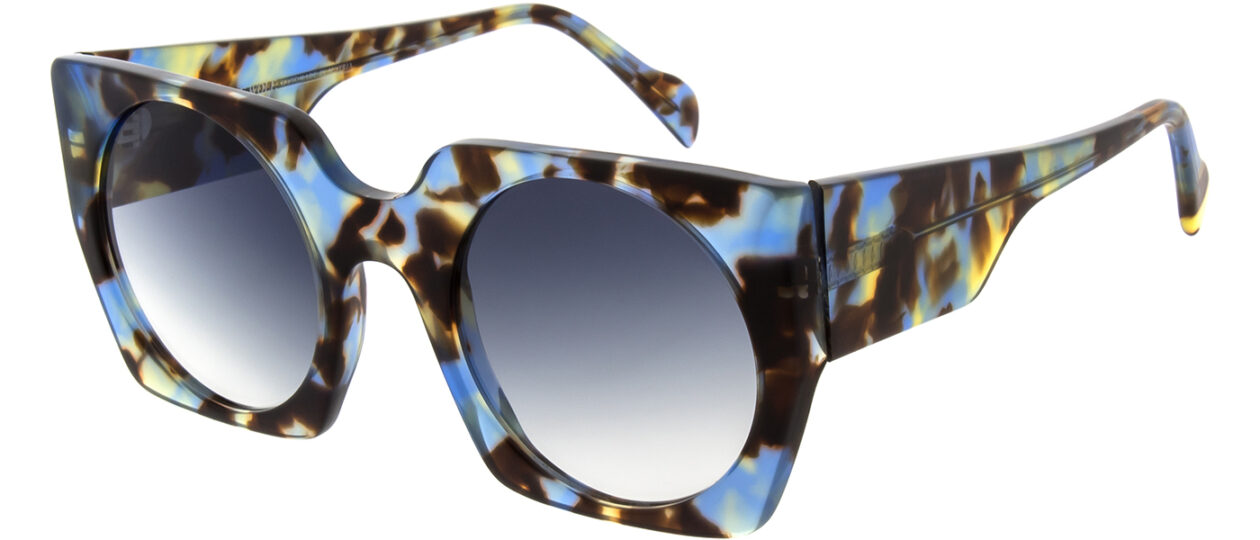 Der Trick an Liesl ist, dass die runden Gläser der vehementen, eckigen Form die Härte nehmen. Die Acetatbrille ist ausdrucksstark und gleichzeitig super tragbar und spricht für sich.