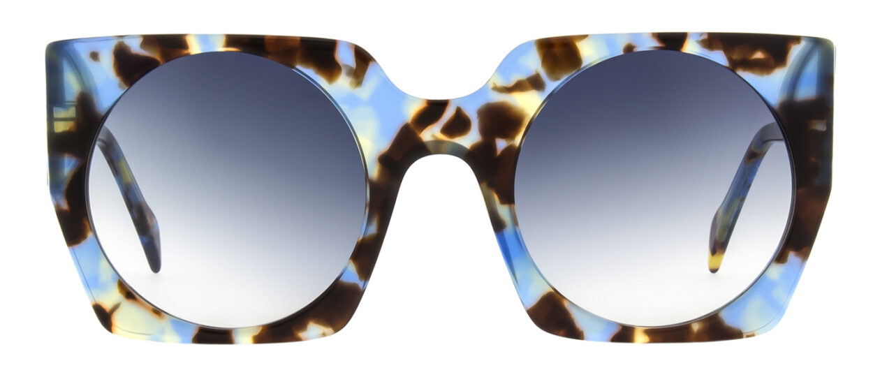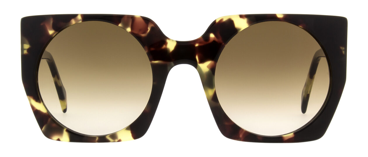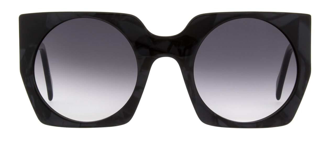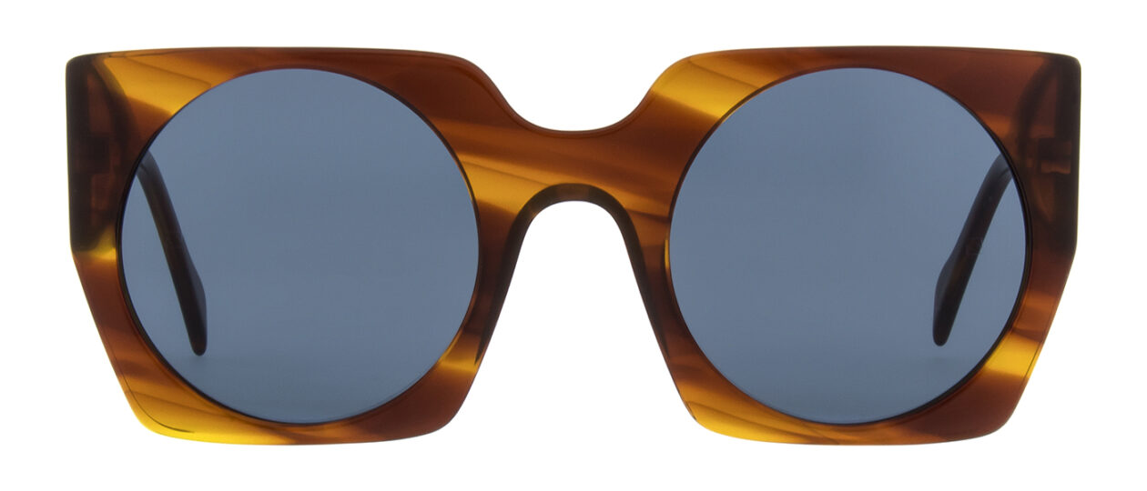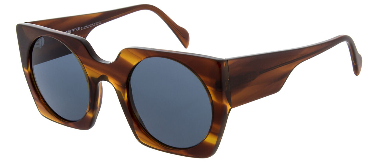 Der Trick an Liesl ist, dass die runden Gläser der vehementen, eckigen Form die Härte nehmen. Die Acetatbrille ist ausdrucksstark und gleichzeitig super tragbar und spricht für sich.